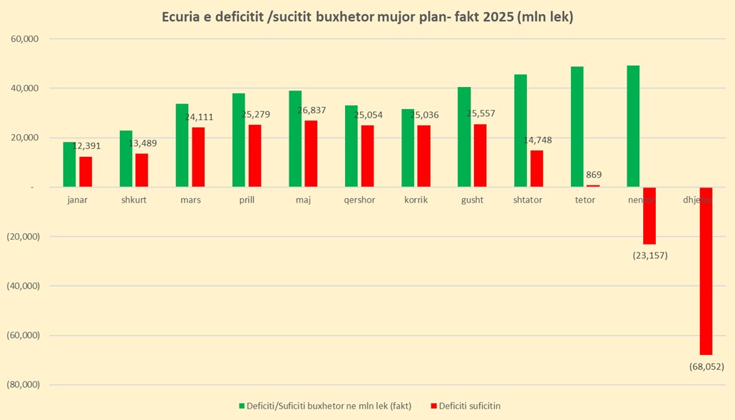 Në vend që suficiti të reduktohej në përputhje me ligjin e buxhetit, u zgjerua me tej nëntor, duke devijuar jo vetëm nga plani, por duke u bërë shkak për keq-menaxhim financiar.