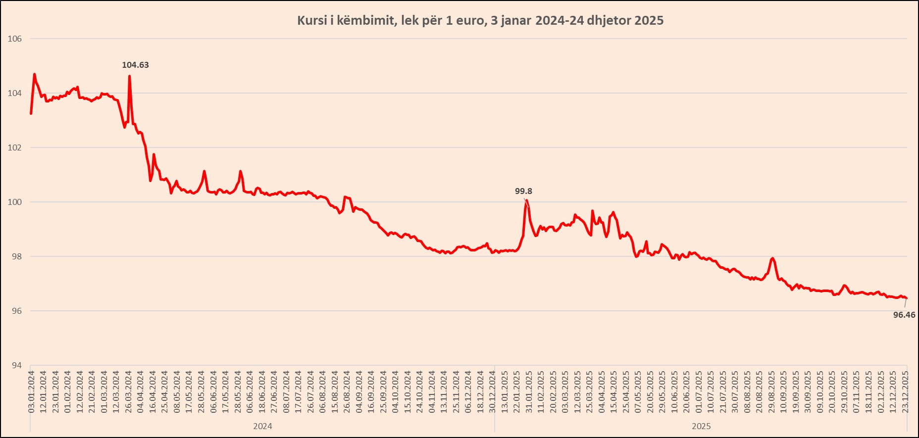 Nga informacionet e deritanishme, Banka Qendrore ka kryer blerje të mëdha të valutës edhe gjatë vitit 2025. Deri në fund të 9-mujorit, këto blerje kishin vlerën e rreth 800 milionë eurove, ndërsa për vitin 2024 kishte blerë 933 milionë euro të tjera. Në mungesë të ndërhyrjeve të bankës së Shqipërisë kursi i këmbimit të monedhës europiane me siguri do të kishte arritur nivele edhe më të ulëta në raport me Lekun.