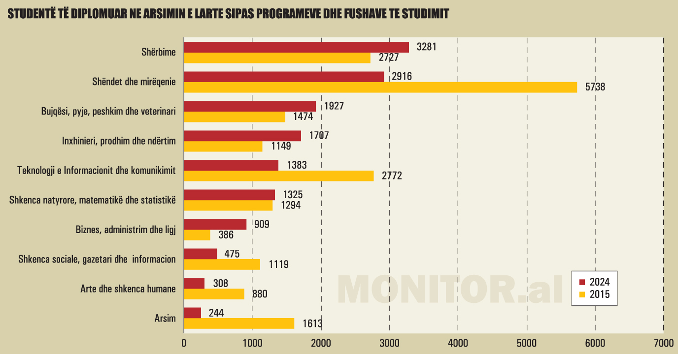 Kjo po prodhon një paradoks të rrezikshëm: Shqipëria përballet njëkohësisht me mungesë të theksuar të specialistëve në sektorë kyç të ekonomisë dhe me tepricë diplomash në fusha që kanë gjithnjë e më pak kthim real në punësim.