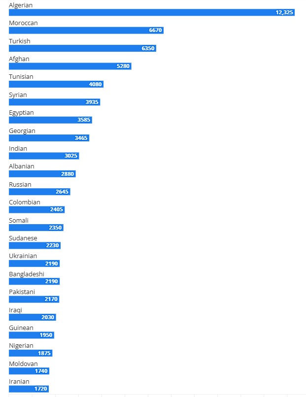 Numrat më të lartë të riatdhesimeve në të gjithë BE-në në tremujorin e tretë të vitit 2025 u raportuan për shtetasit algjerianë (12,325) dhe marokenë (6,670).