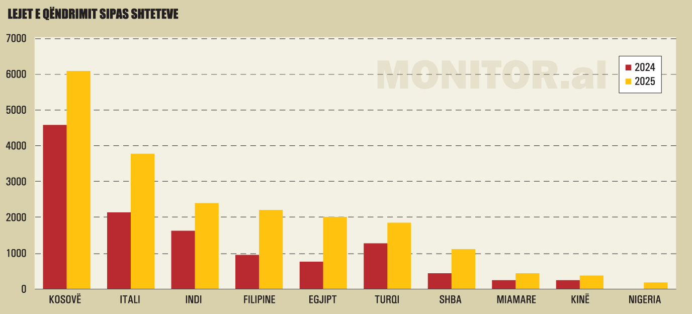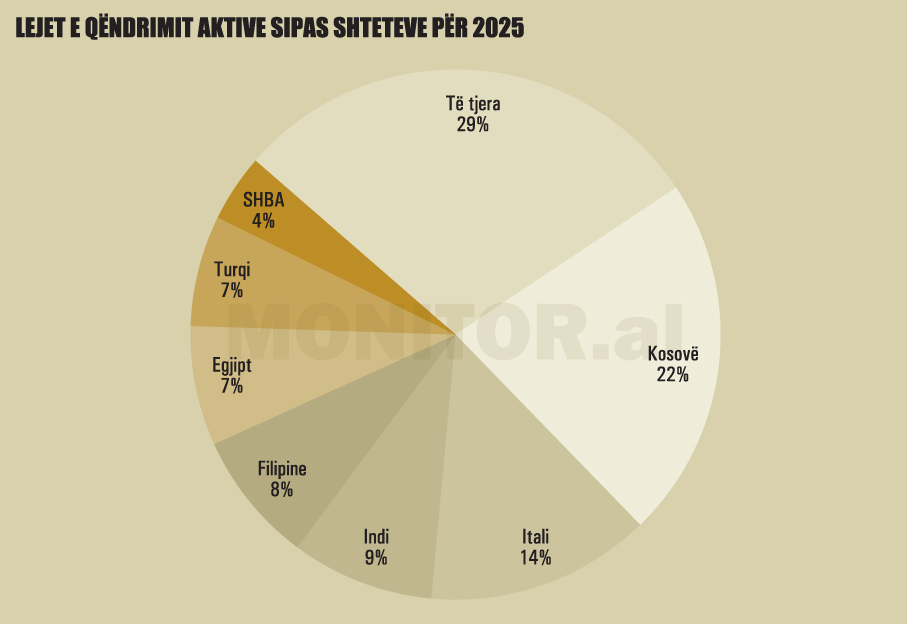 Sipas tĂ« dhĂ«nave tĂ« Regjistrit Elektronik pĂ«r tĂ« Huajt (FER) dhĂ«nĂ« pĂ«r “Monitor” nga Policia e Shtetit, pĂ«r vitin 2025 numri i shtetasve tĂ« huaj tĂ« pajisur me leje qĂ«ndrimi nĂ« ShqipĂ«ri arriti 27,514 leje qĂ«ndrimi aktive. Krahasuar me 2024, numri i tĂ« huajve me leje qĂ«ndrimi Ă«shtĂ« rritur 25,4%.