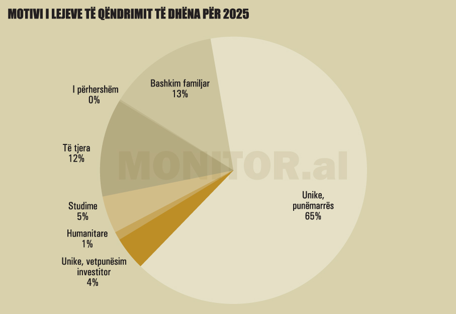 Megjithatë, motivi kryesor për pajisjen me leje qëndrimi në Shqipëri vijon të mbetet për çështje punësimi dhe bashkimi familjar.