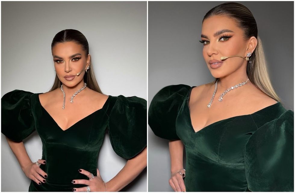 Këngëtarja kishte zgjedhur një fustan jeshil të errët prej materiali plishi, i cili i theksonte hijeshinë dhe elegancën, ndërsa bukuria e saj natyrale nuk kaloi pa u vënë re nga ndjekësit.