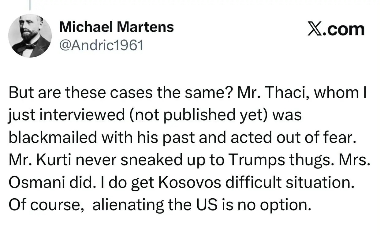 Lidhur me pĂ«rfshirjen e LajÄakut nĂ« skandalin Epstein, Bashkimi Evropian ka reaguar duke theksuar se kjo nuk e komprometon procesin e normalizimit tĂ« marrĂ«dhĂ«nieve mes KosovĂ«s dhe SerbisĂ«, tĂ« cilin ai e ndĂ«rmjetĂ«soi pĂ«r pesĂ« vjet.