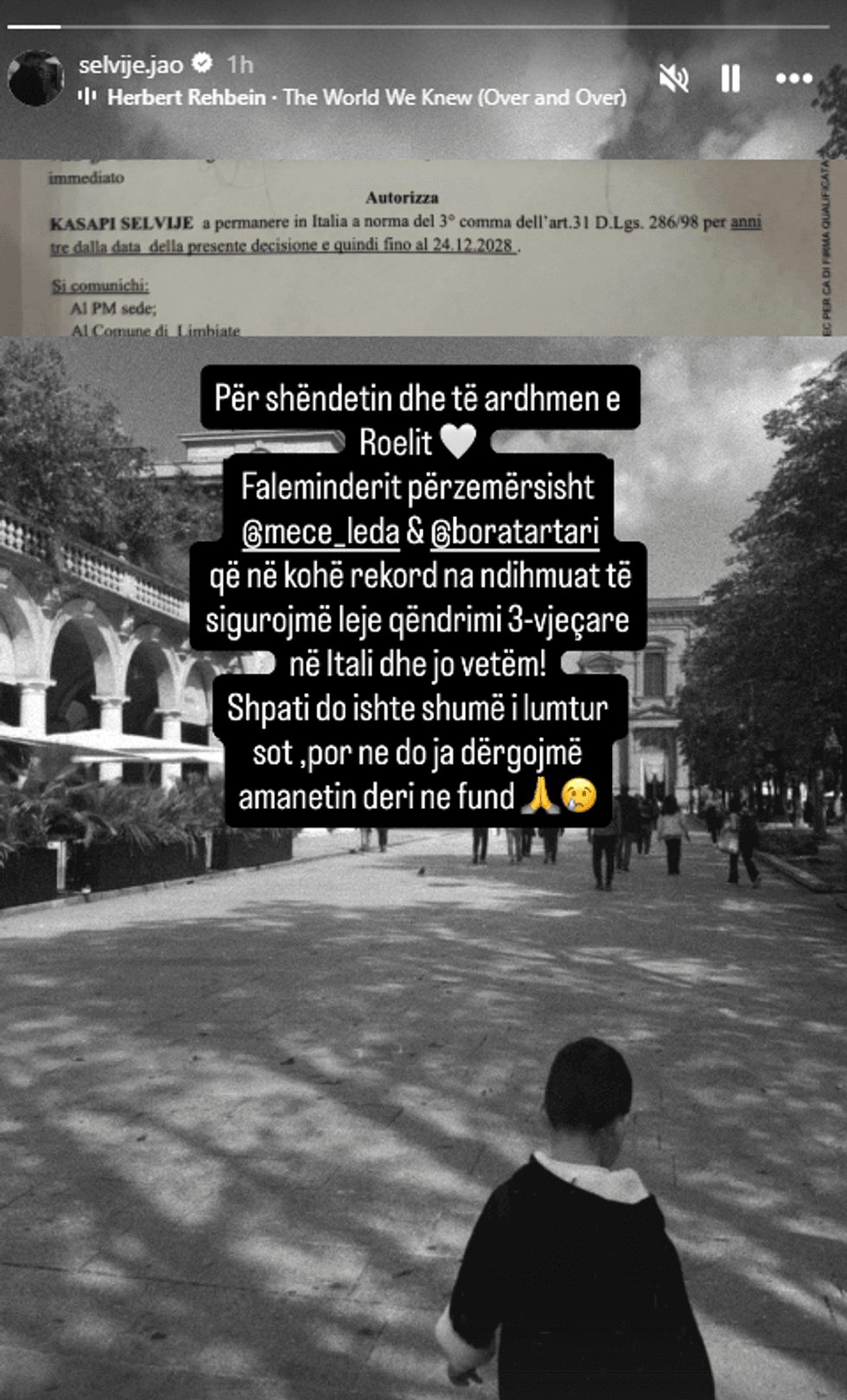 "Për shëndetin dhe të ardhmen e Roelit. Faleminderit përzemërsisht që në kohë rekord na ndihmuat të sigurojmë leje qëndrim 3-vjeçar në Itali dhe jo vetëm", u shpreh ajo.