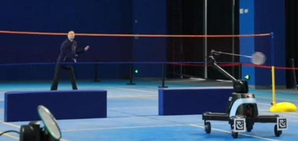Roboti, i zhvilluar nga kompania teknologjike Zhejiang Shenchen Kaidong, u përball me disa nga lojtarët më të mirë të badmintonit në Kinë në Shaoxing, Zhejiang.