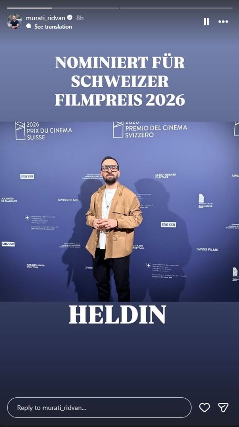 âSchweizer Filmpreisâ konsiderohet mbrĂ«mja mĂ« prestigjioze e ndarjes sĂ« çmimeve nĂ« ZvicĂ«r, ku nderohen filmat, aktorĂ«t dhe krijuesit mĂ« tĂ« spikatur tĂ« vitit. Prania e Muratit nĂ« kĂ«tĂ« event u shoqĂ«rua me vĂ«mendje tĂ« veçantĂ«, sidomos pĂ«r shkak tĂ« suksesit tĂ« filmit âHeldinâ, ku ai Ă«shtĂ« pjesĂ« e kastit.