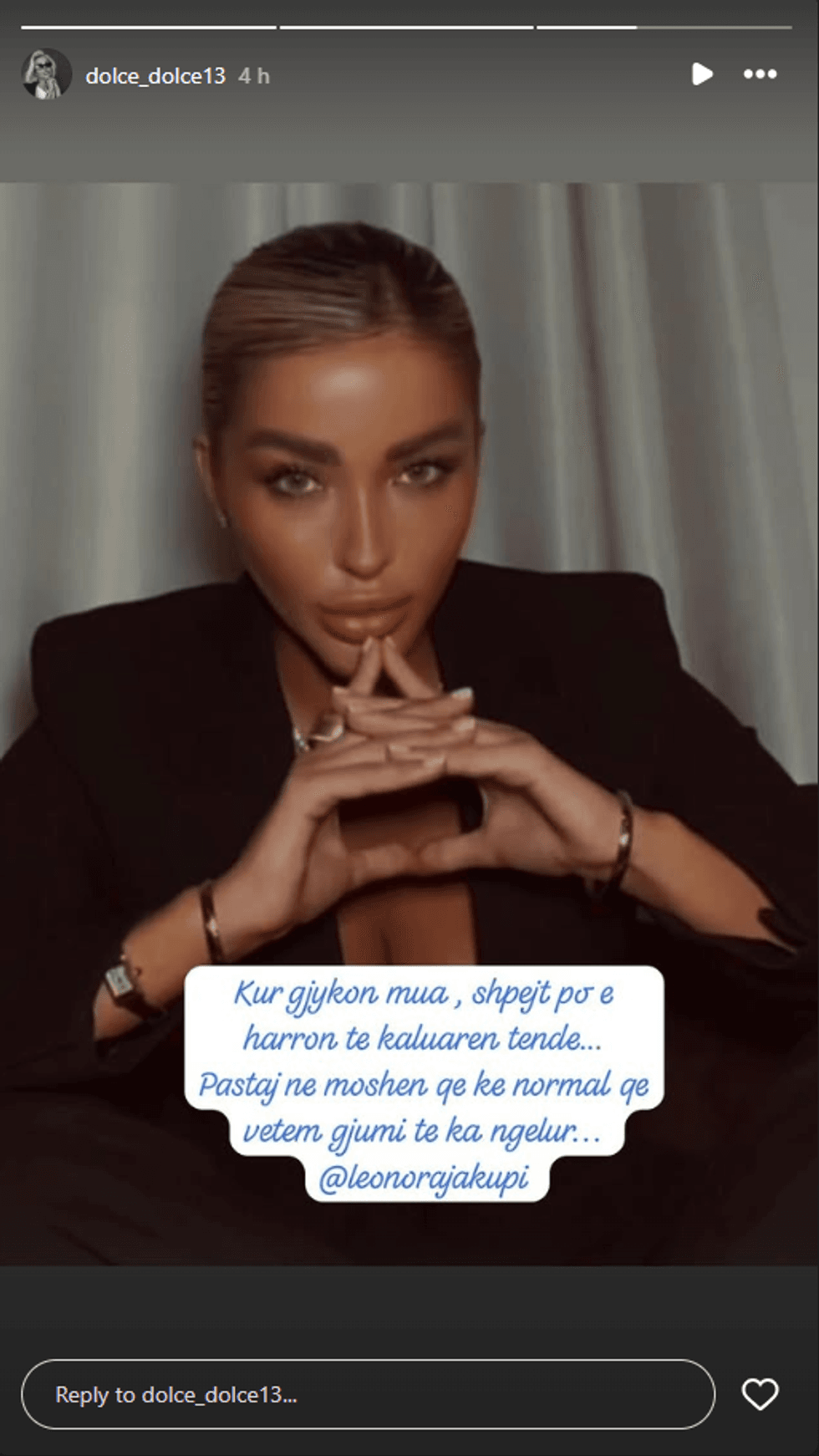 Reagimi i tyre ishte drejtpërdrejt ndaj Leonorës, e cila është opinioniste e formatit, pas komenteve që ajo bëri kundrejt Dolces.