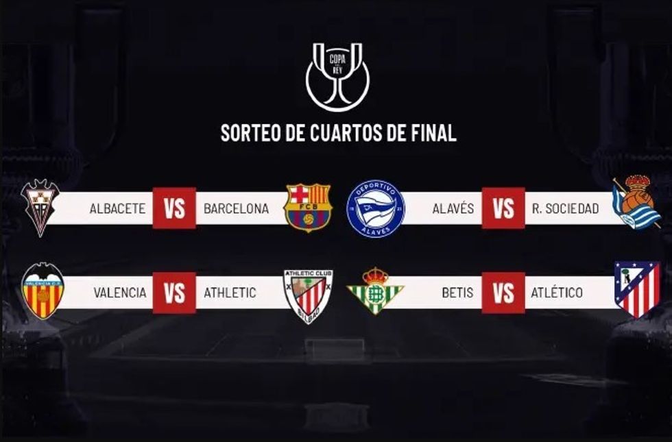 Ndeshjet Albacete â Barcelona, Alaves â Real Sociedad, Valencia â Athletic Bilbao dhe Real Betis â Atletico Madrid do tĂ« zhvillohen mĂ« 3, 4 dhe 5 shkurt, ndĂ«rsa Federata Spanjolle e Futbollit (RFEF) pritet tĂ« konfirmojĂ« sĂ« shpejti datat dhe oraret pĂ«rfundimtare.