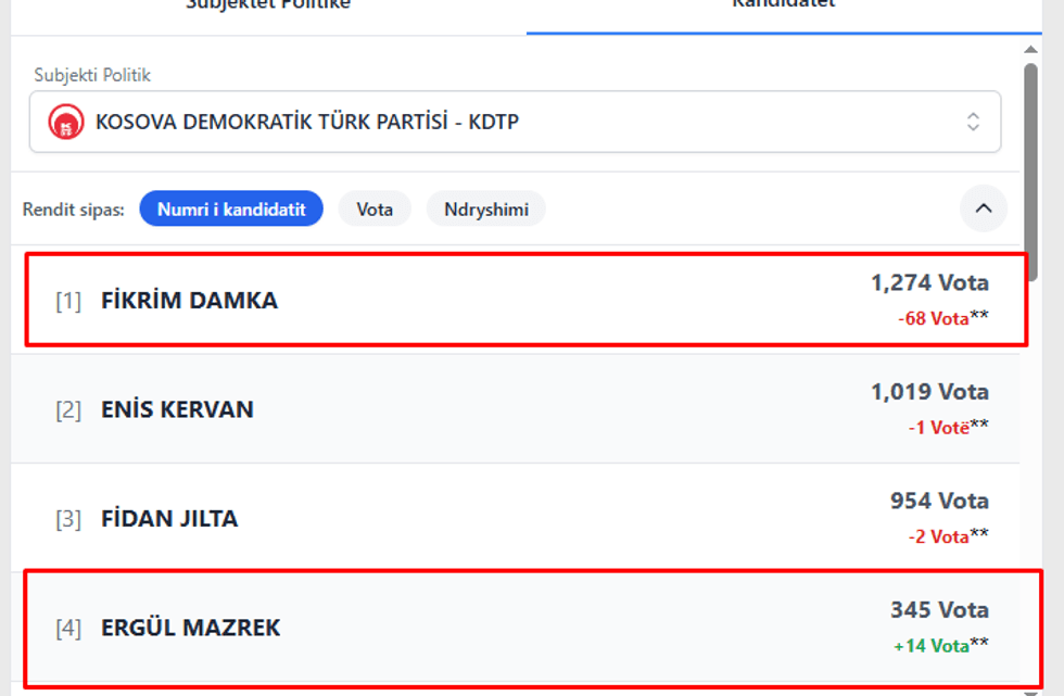 Rinumërimi i deritanishëm i votave me shumë mundësi do ta lë jashtë Kuvendit ministrin në detyrë të Zhvillimit Rajonal dhe kryetarin e Partisë Demokratike Turke të Kosovës, Fikrim Damkën.