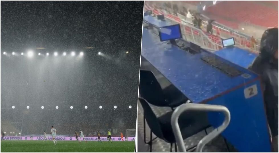 Në videot e shpërndara, uji shihet duke rrjedhur nga tavani dhe duke u derdhur mbi shkallët e tribunave, çka e bëri tepër të vështirë punën e gazetarëve dhe stafit teknik të pranishëm në stadium.