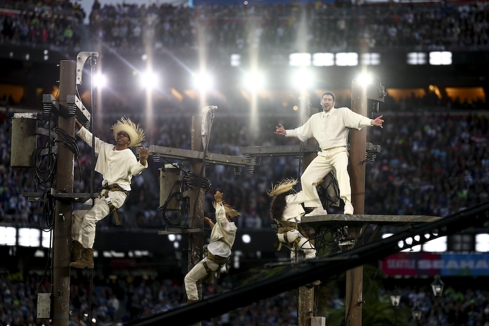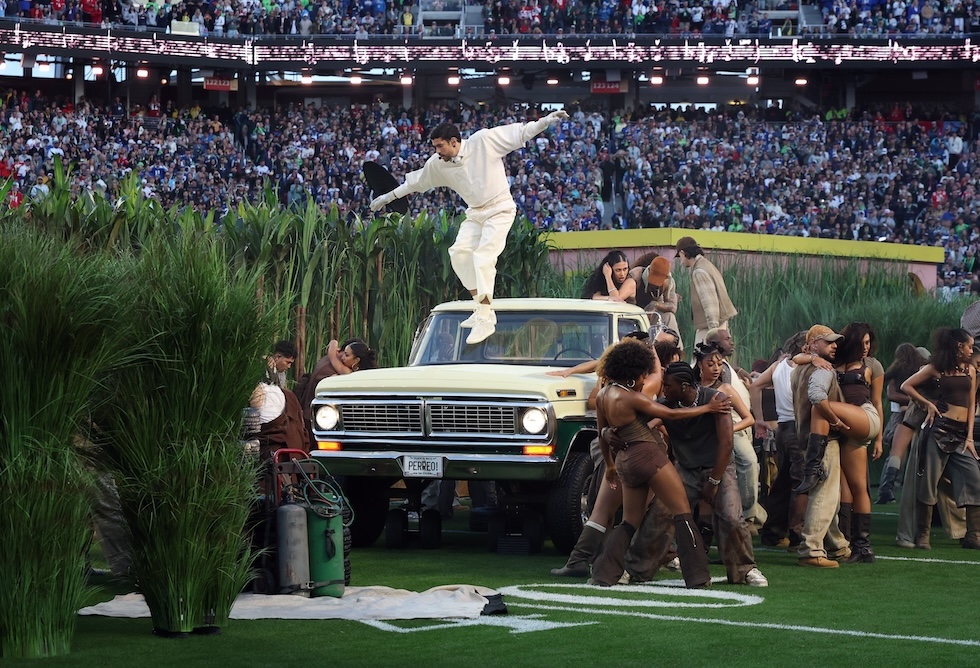 NĂ« njĂ« performancĂ« trembĂ«dhjetĂ« minutĂ«she, tĂ« pasuruar me paraqitje tĂ« shkurtra nga Pedro Pascal, Jessica Alba, Cardi B dhe Karol G, si dhe paraqitjet e Lady Gaga dhe Ricky Martin, artisti riafirmoi vlerĂ«n e identitetit dhe autenticitetit, duke pĂ«rfunduar me njĂ« mesazh nĂ« ekranin gjigant: âE vetmja gjĂ« mĂ« e fuqishme se urrejtja Ă«shtĂ« dashuriaâ.