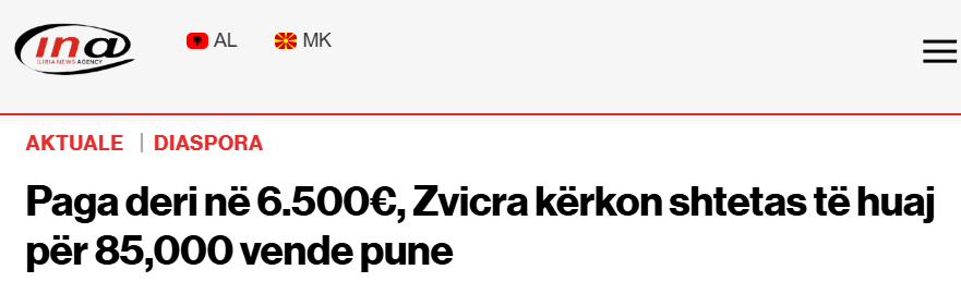 Sipas ambasadĂ«s, ndryshe nga çâpretendohet vetĂ«m njĂ« e dhjeta, pra njĂ« maksimum prej 8500 punĂ«torĂ«sh dhe specialistĂ«sh tĂ« kualifikuar nga vendet e treta mund tĂ« rekrutohen nĂ« ZvicĂ«r nĂ« 2026.