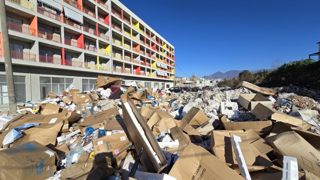 Ndërkohë, zona përreth pallateve ishte e mbushur me mbetje ndërtimi, copa betoni, kuti kartoni dhe mbeturina të tjera. Banorët thanë se ritmi i shpejtë i popullimit, i kombinuar me mungesën e menaxhimit, ka krijuar kaos në hapësirat e përbashkëta.