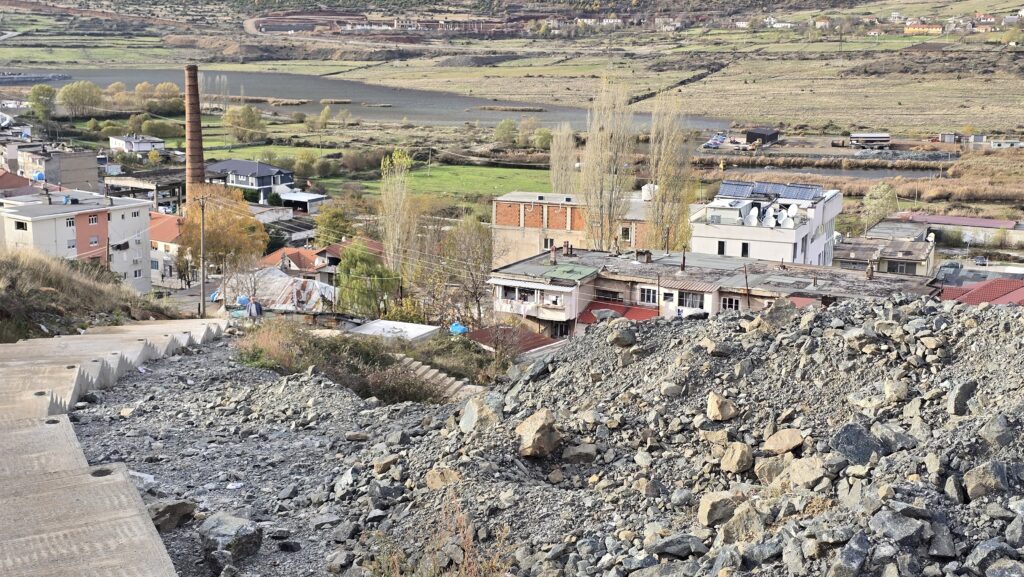 Bulqiza, Shqipëri, e parë nga masivi ku ndodhen galeritë e minierës së kromit (15/11/2025) / Credit: Jona Cenameri