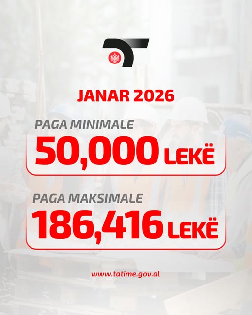 Sipas njoftimit për shtyp të shpërndarë ditën e sotme, duke filluar nga data 1 janari 2026, niveli i pagës minimale në shkallë vendi pëson një rritje të ndjeshme, duke u fiksuar në vlerën 50,000 lekë në muaj.