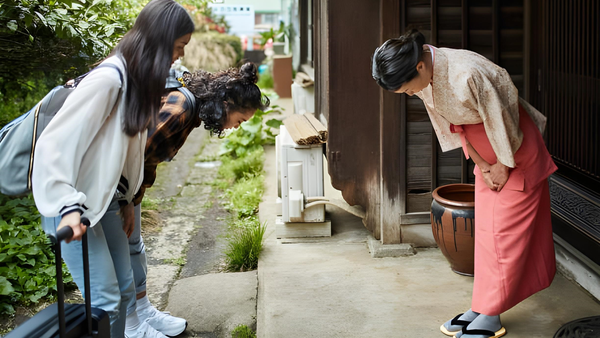 Në Japoni, etika është e ndërthurur thellë me gjuhën dhe kulturën e përditshme. Ekzistojnë forma të ndryshme përshëndetjeje dhe mënyra shprehjeje në varësi të statusit shoqëror të bashkëbiseduesit; ndryshe u drejtoheni eprorëve, të moshuarve, kolegëve apo miqve.