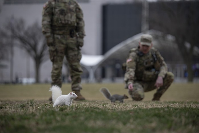 Anëtarë të Gardës Kombëtare gjithashtu u panë duke ushqyer ketrat në zonë.