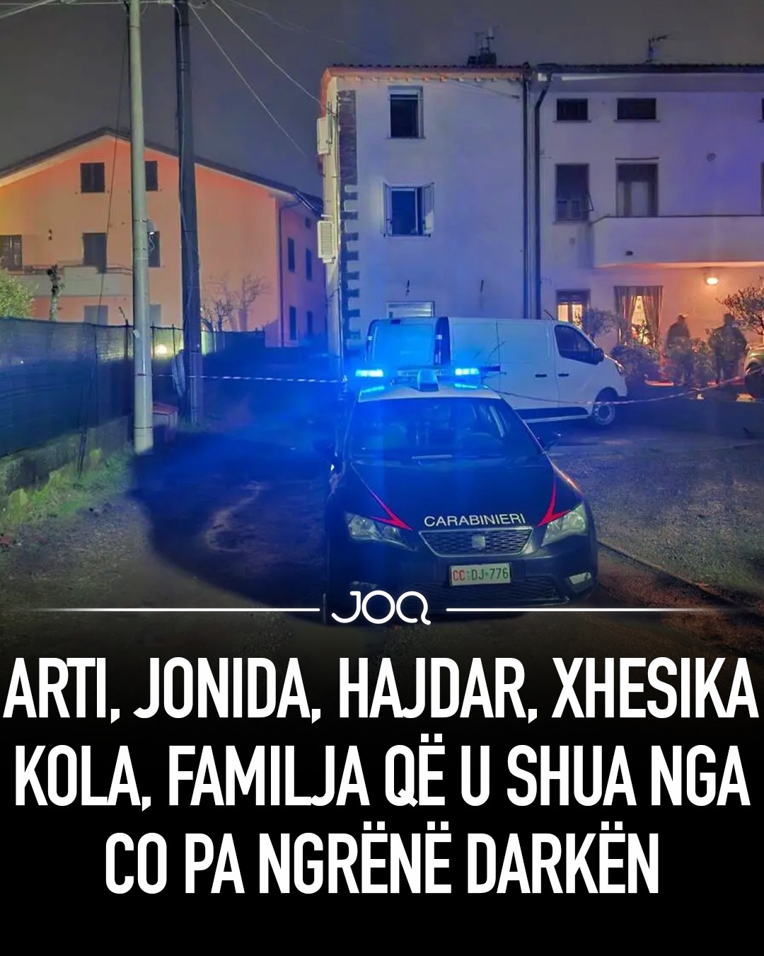 Arti Kola, 48 vjeç, Jonida Kola, 43 vjeçe, Hajdar Kola, 22 vjeç, dhe Xhesika Kola, 15 vjeçe, janë identifikuar si katër anëtarët e familjes shqiptare që humbën jetën në Itali si pasojë e rrjedhjes së monoksidit të karbonit në banesën e tyre. Emrat u bënë publikë nga Kryetari i komunës së Porcarit, Leonardo Fornaciari, i cili shprehu trishtimin e komunitetit dhe i bëri thirrje bashkësisë të qëndrojë pranë të afërmve në këtë moment zie. Ngjarja dyshohet të ketë ndodhur në orët e mbrëmjes, rreth kohës së darkës, ndërsa familja kishte bërë gati tryezën për të ngrënë pa e ditur se po përballej me një rrezik fatal. Alarmin e dha vëllai i kryefamiljarit, i cili, pasi nuk arriti të kontaktonte me ta, njoftoi karabinierët. Në mbërritje, policia u detyrua të hapë derën me forcë dhe gjeti katër anëtarët e familjes të pajetë në dysheme. Gjatë ndërhyrjes, një familjar tjetër humbi ndjenjat për shkak të ekspozimit ndaj monoksidit, por u shpëtua falë reagimit të shpejtë të karabinierëve dhe u dërgua me urgjencë në spitalin e Cisanellos, ku ndodhet nën kujdesin e mjekëve. Një ngjarje e rëndë që rikthen në vëmendje rrezikun e gazit të padukshëm dhe nevojën për masa parandaluese më të forta në banesa, veçanërisht për familjet që jetojnë larg vendit të origjinës dhe përballen me kushte të vështira.
