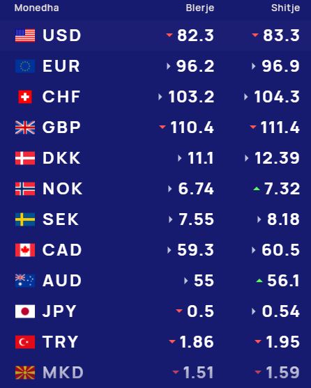 Ndërsa paundi britanik, do blihet me 110.4 lekë dhe do shitet me 111.4 lekë.