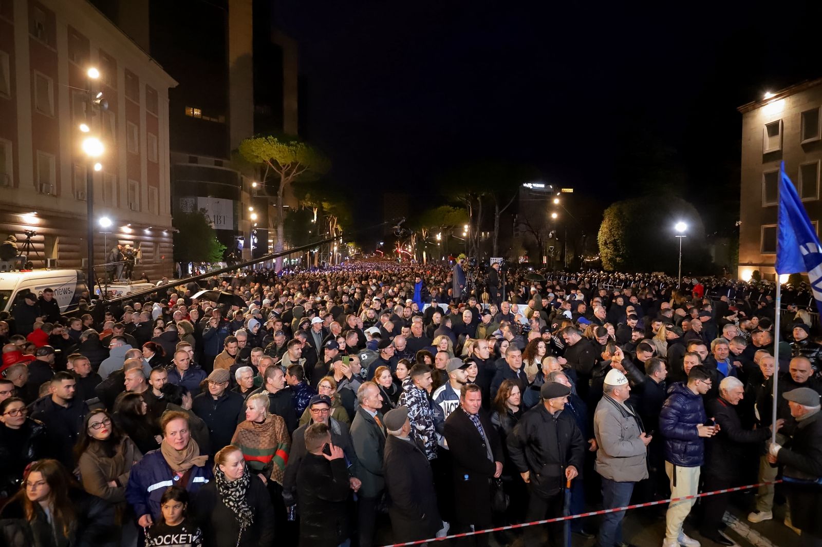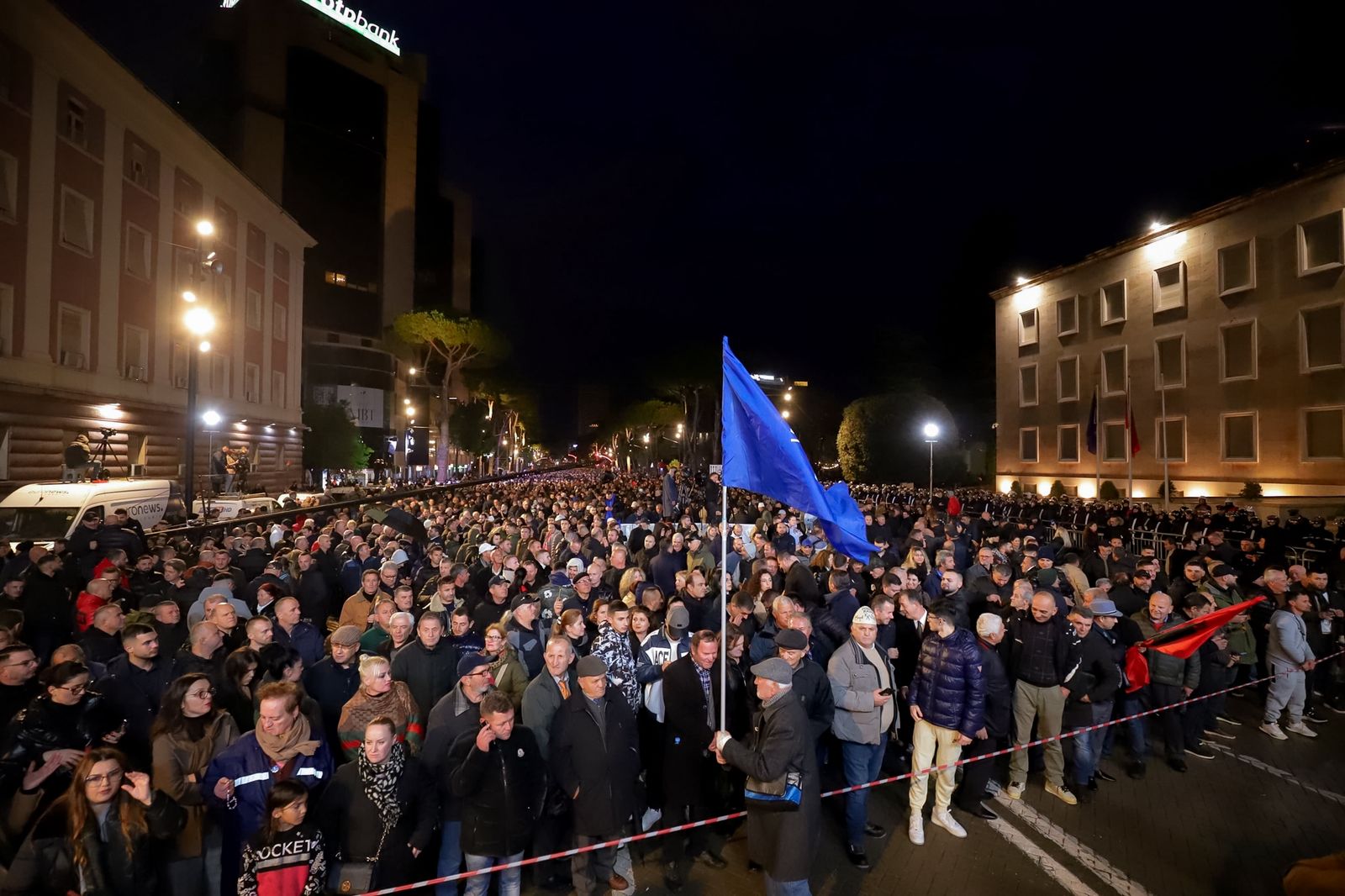 Mijëra mbështetës të PD janë mbledhur në shesh për të kërkuar dorëheqjen e kryeministrit Edi Rama dhe zëvendëses së tij, Belinda Balluku.