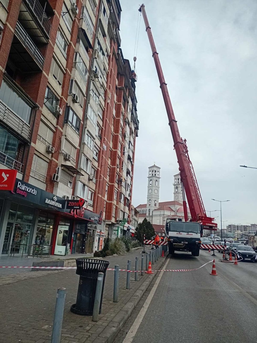 Në njoftim thuhet se ekipet e tyre në bashkëpunim me shërbimet përkatëse, janë duke realizuar intervenime teknike të specializuara, me qëllim parandalimin e rrezikut për kalimtarët dhe banorët.