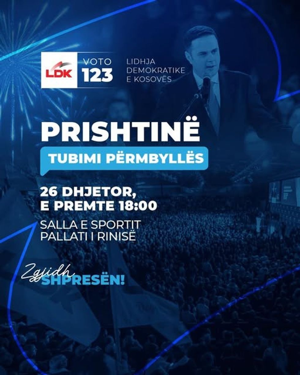 Ejani, të premten në fushatën përmbyllëse, në orën 18:00, në Sallën e Sportit - Pallati i Rinisë, në Prishtinë.