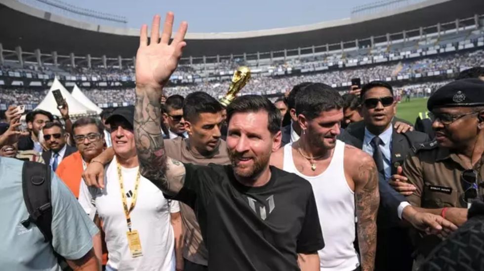 Messi ndodhet në Indi në kuadër të një turneu gjatë të cilit është planifikuar të marrë pjesë në koncerte, seminare futbolli për të rinj, një turne padel dhe të marrë pjesë në nisma bamirësie në evente në Kolkata, Hyderabad, Mumbai dhe New Delhi.Sipas raportimeve në mediat indiane, fituesi i Kupës së Botës 2022 eci nëpër stadium duke përshëndetur tifozët, por shpejt u rrethua nga një turmë e madhe dhe u largua 20 minuta pas mbërritjes së tij.