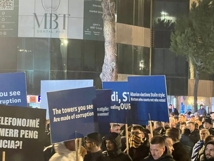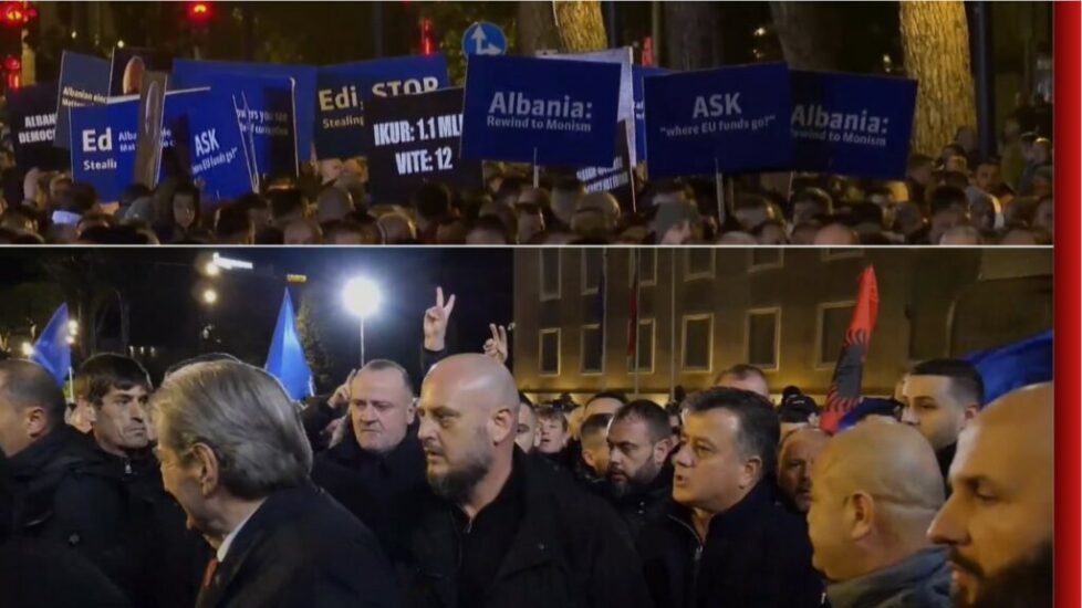 âAsk where EU fonds goâ, âEdi stop stealing our Moneyâ, âKĂ« tĂ« telefonojmĂ« kur na merr peng policia?â, âIkur: 1.1 mln euro vite:12 viteâ, thuhej nĂ« disa prej pankartave.