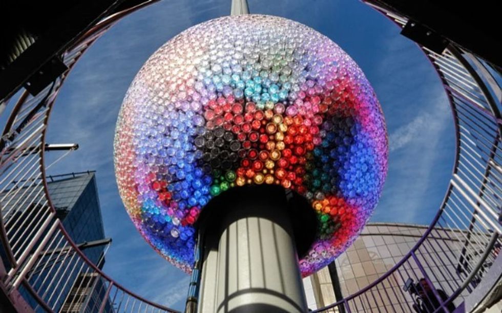 Topi i kĂ«tij viti, i njohur si âConstellation Ballâ, Ă«shtĂ« mĂ« i madhi dhe mĂ« teknologjik deri mĂ« sot, duke peshuar mijĂ«ra kilogramĂ« dhe duke qenĂ« i veshur me qindra kristale qĂ« reflektojnĂ« dritĂ«n, duke krijuar njĂ« spektakĂ«l mbresĂ«lĂ«nĂ«s ndriçimi nĂ« momentin e ndĂ«rrimit tĂ« viteve.