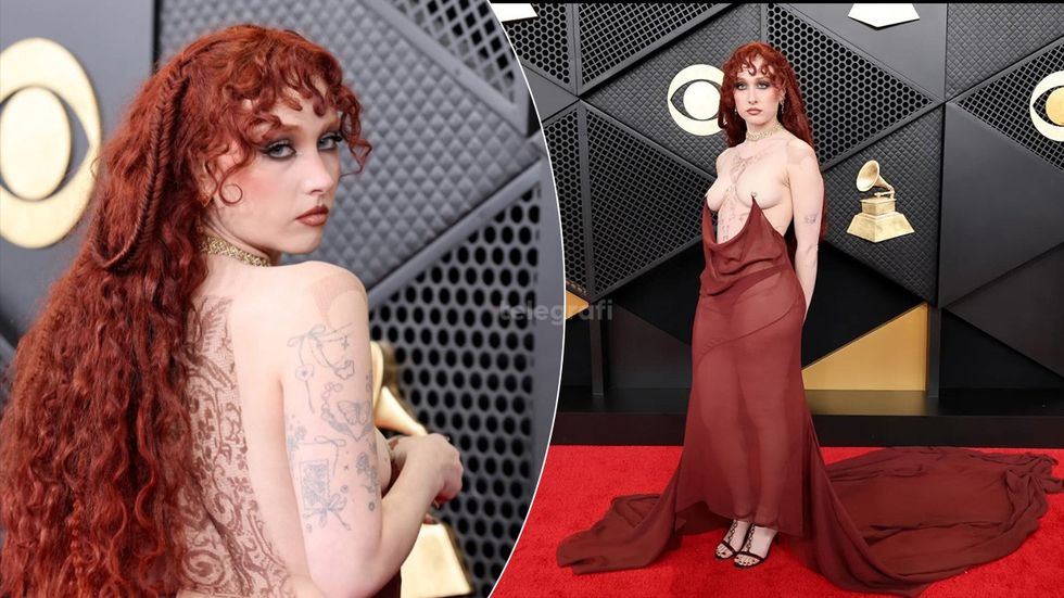 Artistja, e nominuar për Albumin e Vitit dhe Performancën më të Mirë Solo Pop, zgjodhi një veshje të guximshme që ekspozonte gjoksin dhe mbulonte pjesën tjetër të trupit me shifon, ndërsa trupin e saj e zbukuroi me tatuazhe të përkohshme në ton me fustanin, shkruan BBC.