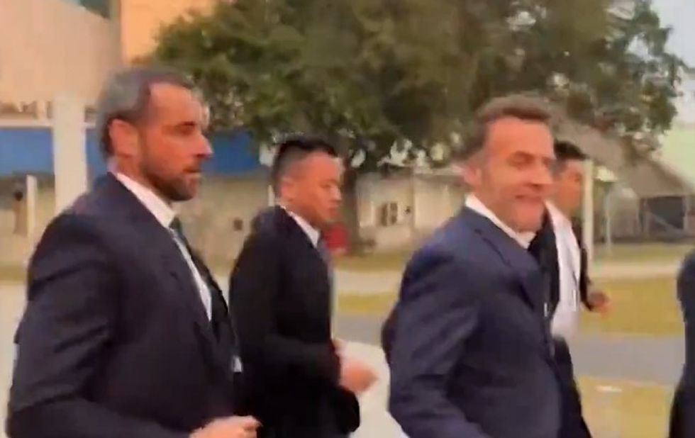 đMacron escaped from Chinese security officials to talk to a crowd of students