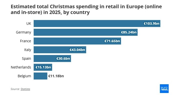 Gjermania pritet të bëhet vendi që shpenzon më shumë në Bashkimin Evropian gjatë sezonit festiv, sipas të dhënave nga platforma Statista.