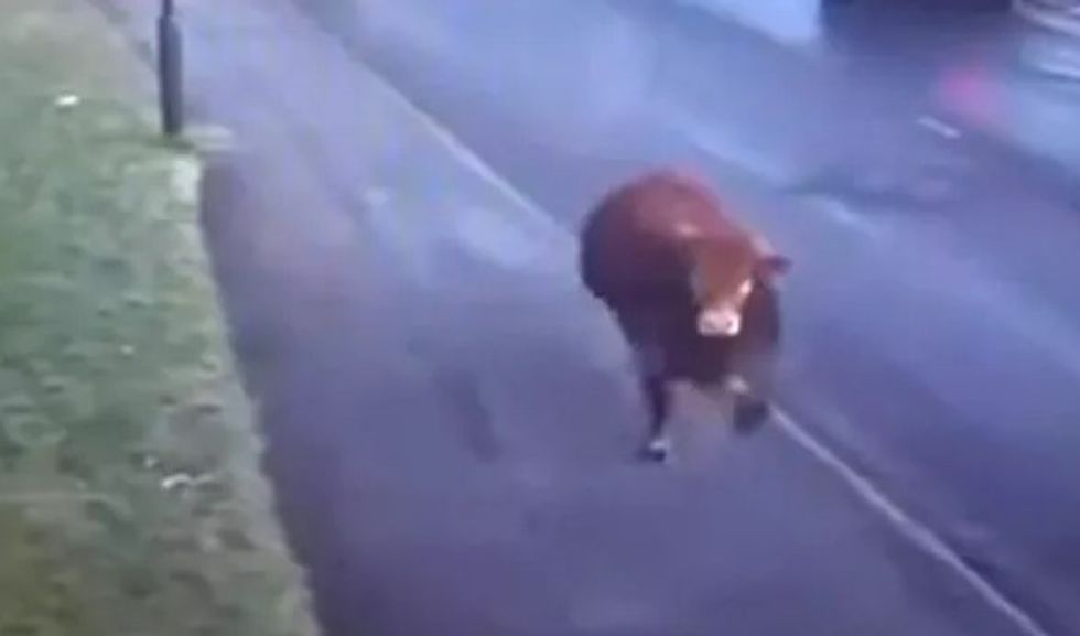 Kafsha u pa të mërkurën në mëngjes duke vrapuar nëpër qytet bashkë me një tufë lopësh, duke bllokuar trafikun dhe më pas duke hyrë në shinat e trenit pranë stacionit Selby.