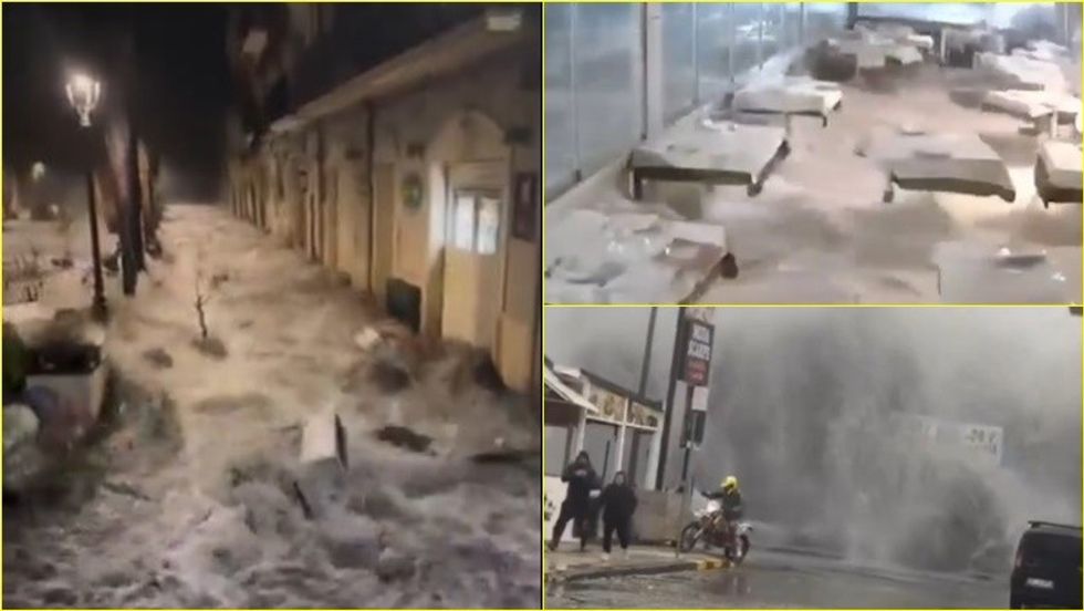 A powerful storm surge flooded streets and pushed debris inland last night in Letojanni, Sicily, Italy. pic.twitter.com/SJb1JJZ47d