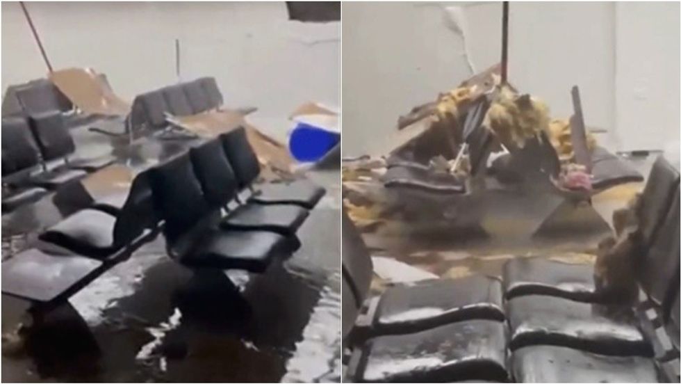 Dhe në disa pamje që po qarkullojnë në internet shihen dëmet katastrofike, përkatësisht çatinë e Aeroportit Ndërkombëtar Sangster të mbuluar plotësisht nga uji që ende derdhet në terminal, duke përmbytur hapësirën ku familjet dikur mblidheshin për të hipur në fluturimet e tyre.