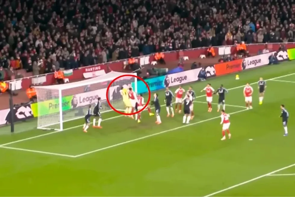 Një nga portierët më të mirë në botë reagoi me dëshpërim pas një goditjeje nga këndi nga Bukaya Saka, pasi nuk arriti të kapte topin e lartë që i ra në krahë.