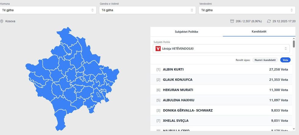 Të dhënat pasqyrojnë një skenë politike ende të polarizuar, me Vetëvendosjen që ruan primatin, PDK-në që konsolidon rritjen dhe partitë tjera që përballen me sfida serioze për të rifituar mbështetjen e elektoratit.