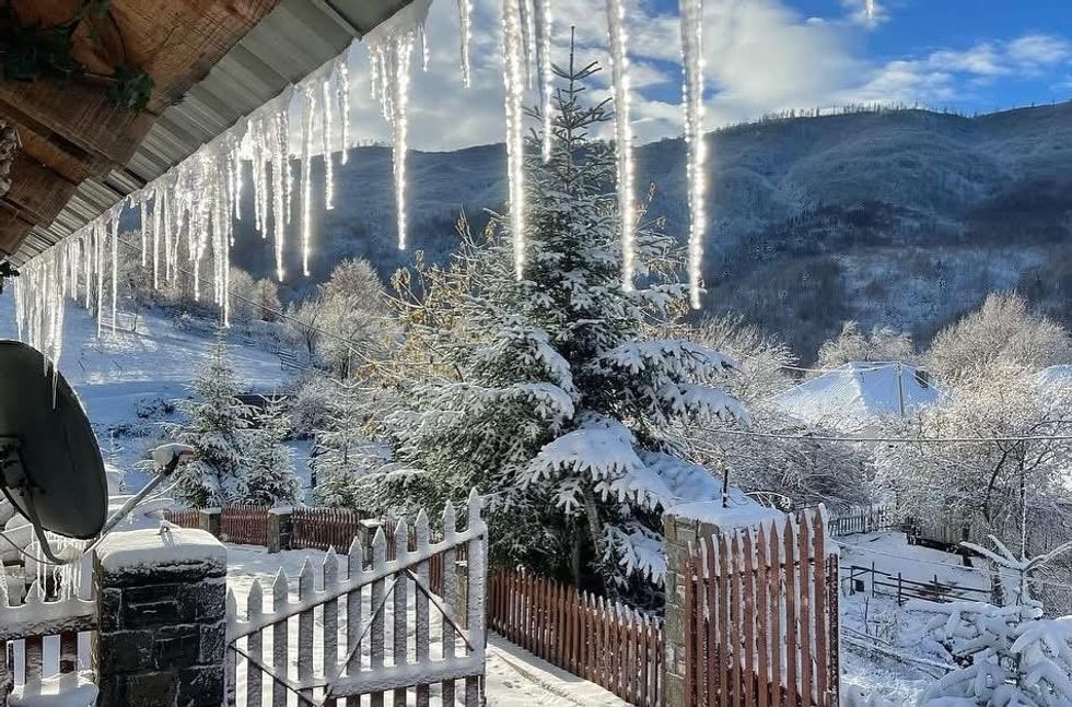 Flokët e dendura të borës kanë krijuar pamje mahnitëse, duke shndërruar peizazhet e zakonshme në një atmosferë dimërore, ndërsa stina e vjeshtës sapo ka trokitur.