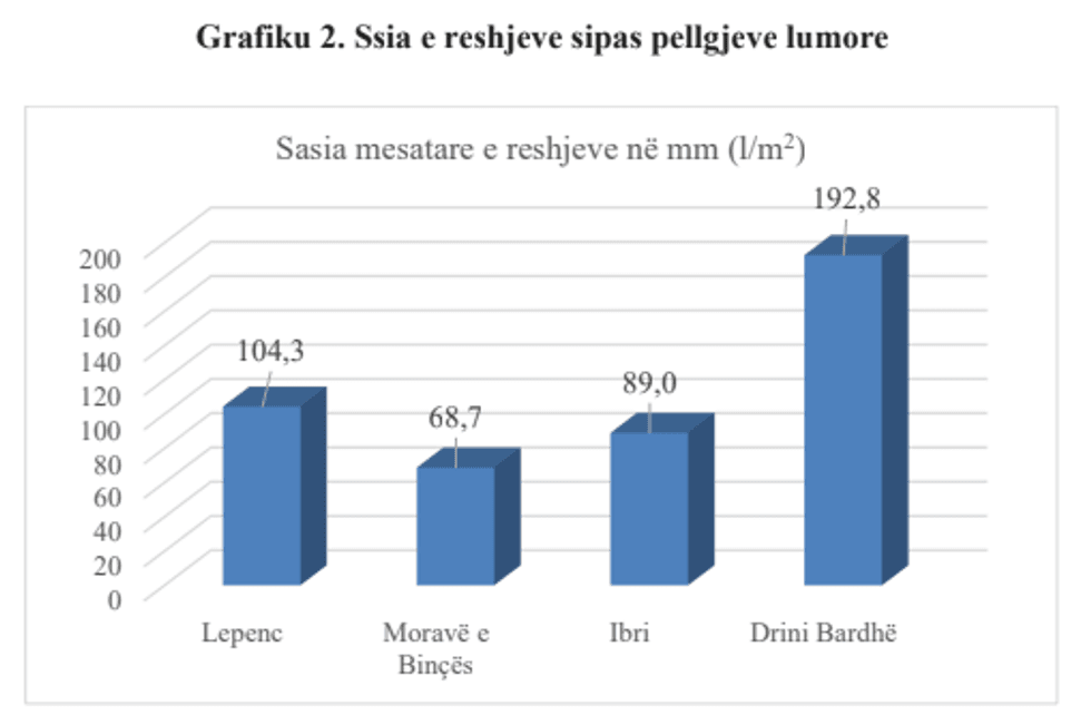 Siç vërehet nga të dhënat, sasia më e madhe e reshjeve është regjistruar në pjesën perëndimore të Kosovës në Pellgu i Drinit të Bardhë 192.8 mm, ku si pasojë janë shkaktuar edhe vërshimet/përmbytjet më të mëdha.