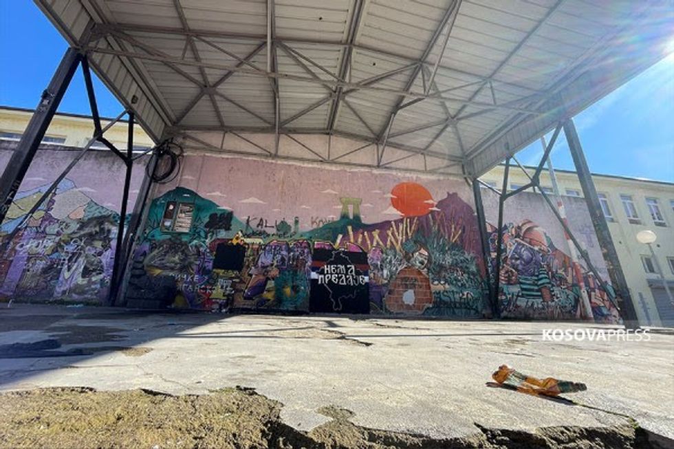 Sipas pamjeve të siguruara nga KosovaPress, në muret e oborrit të shkollës teknike shihen mbishkrime si "Rusët dhe serbët, vëllezër përgjithmonë", "nuk ka dorëzim" dhe "Kosova është Serbi".