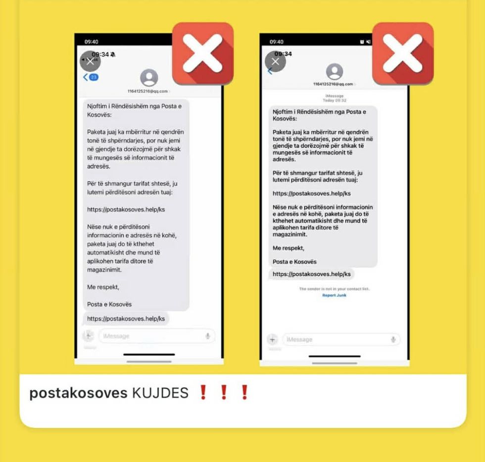 “Persona të panjohur po dërgojnë mesazhe SMS qytetarëve, duke u paraqitur në mënyrë të rreme në emër të Postës së Kosovës. Menjëherë pas identifikimit të këtij rasti, Posta e Kosovës ka njoftuar organet kompetente dhe është duke bashkëpunuar ngushtë me to për adresimin e kësaj çështjeje”, thuhet në njoftim.