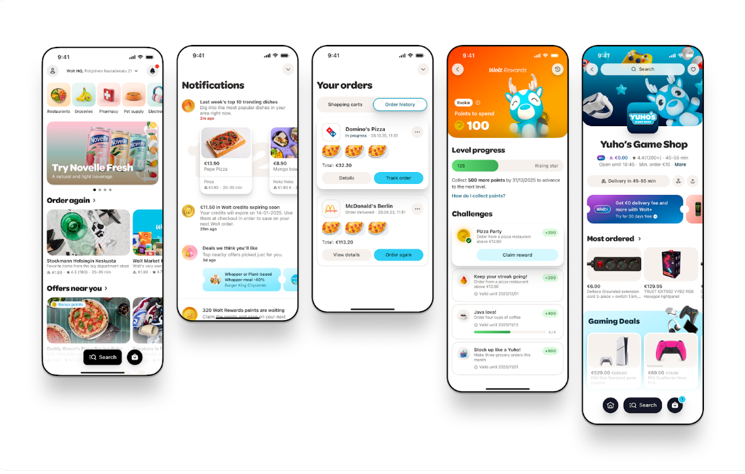 Rifreskim pamor dhe qasje e strukturuar: Forma të rrumbullakosura, ngjyra të gjalla dhe lëvizje adaptive krijojnë një ndërfaqe moderne dhe të strukturuar, e cila i mundëson Wolt të shafqë më shumë produkte dhe të mbështesë përvoja blerjeje në zhvillim, ndërsa platforma zgjerohet.