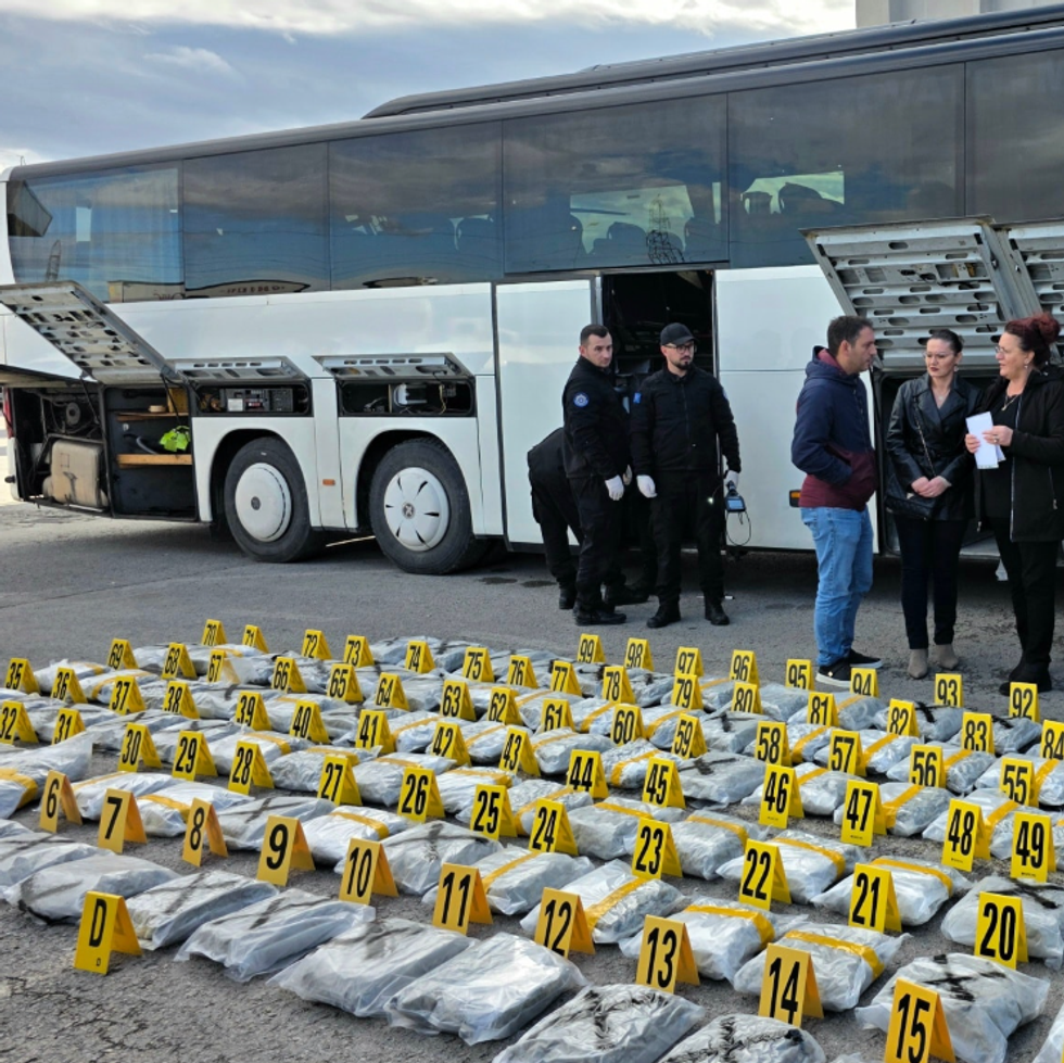 Një person me inicialet B.K (shofer autobusi) është arrestuar pasi i janë gjetur dhe sekuestruar rreth 120 kilogramë substancë narkotike.