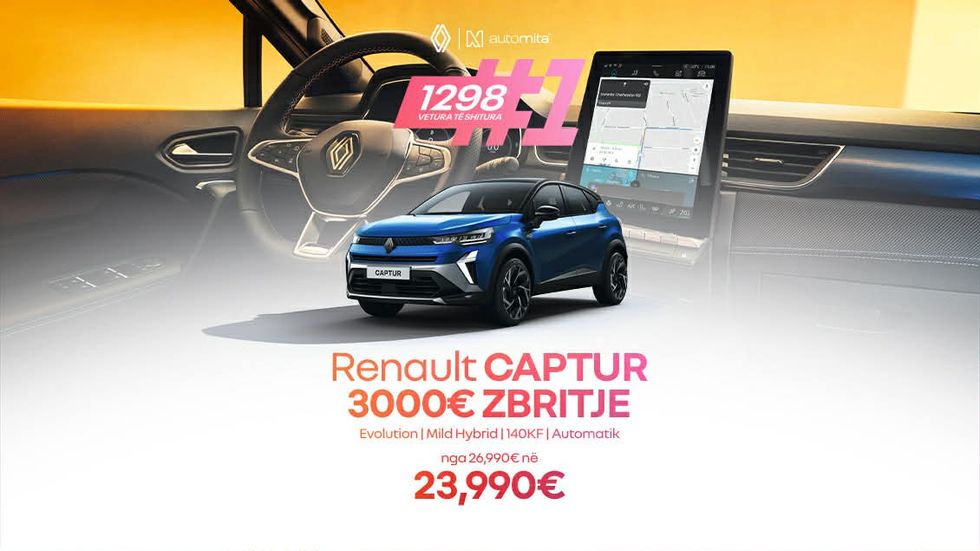 2. Renault Captur - 323 vetura SUV-i kompakt i Renault tërheq blerësit me dizajn modern, komoditet dhe balancim të mirë mes performancës dhe konsumit. Captur është shndërruar në një nga modelet më të preferuara për familjet urbane.