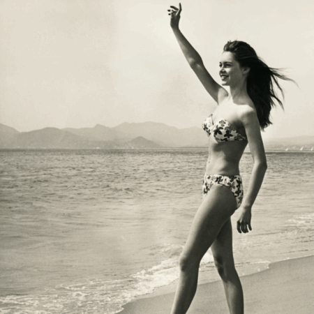 Një foto e aktores në Festivalin e Filmit në Kanë në vitin 1953. Ajo bëri një seri shfaqjesh atje gjatë viteve ’50, duke shkaktuar një stuhi mediatike që më vonë u përshkrua si një “moment bombastik”.