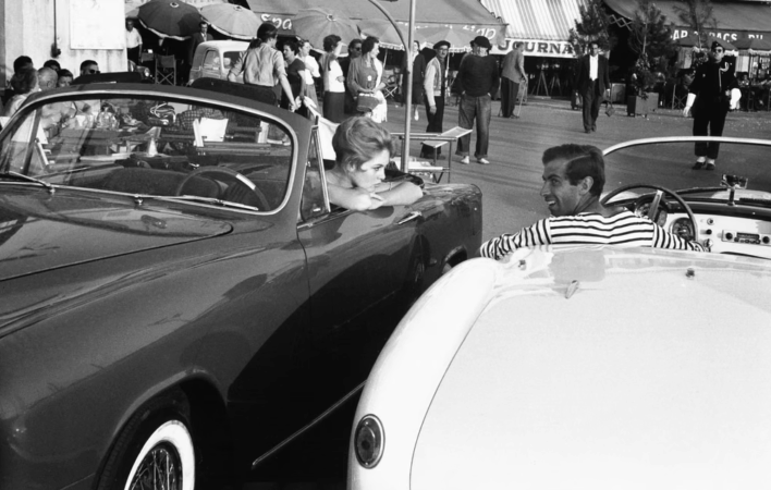 Brigitte Bardot në kabrioletin e saj Simca dhe Roger Vadim në Lancia Aurelia Spider-in e tij, fotografuar për Paris Match në vitin 1956 në Saint-Tropez, gjatë xhirimeve të filmit “And God Created Woman”.