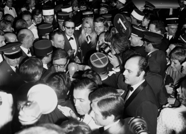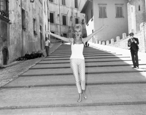 Bardot në Itali, duke promovuar filmin “A Very Private Affair”, mes një cirkusi të madh mediatik që e shoqëronte njëkohësisht.