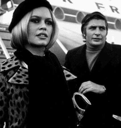 Pas divorcit nga Charrier në vitin 1962, ajo u martua me fotografin gjerman Gunter Sachs në 1966, e parë këtu duke mbërritur në një aeroport në Londër.