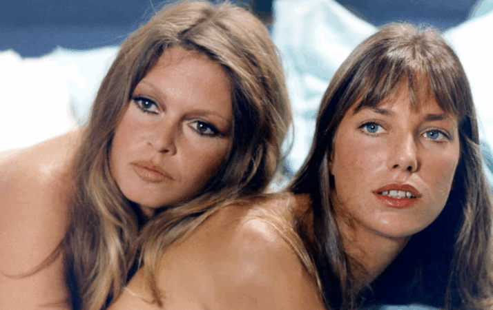 Brigitte Bardot dhe Jane Birkin në setin e filmit “Don Juan, or If Don Juan Was a Woman”, i shkruar dhe regjisuruar nga ish-bashkëshorti i Bardot, Roger Vadim.